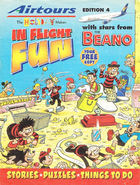I'm always delighted / intrigued to spot advertisers using comics as a medium and I spotted these two comics on ebay recently (so apologies for the quality of some of the images). I'd not come across 'In flight fun' before so I don't know if it just featured Beano characters in these 2 issues or even if there were any subsequent issues. Any help gladly received!